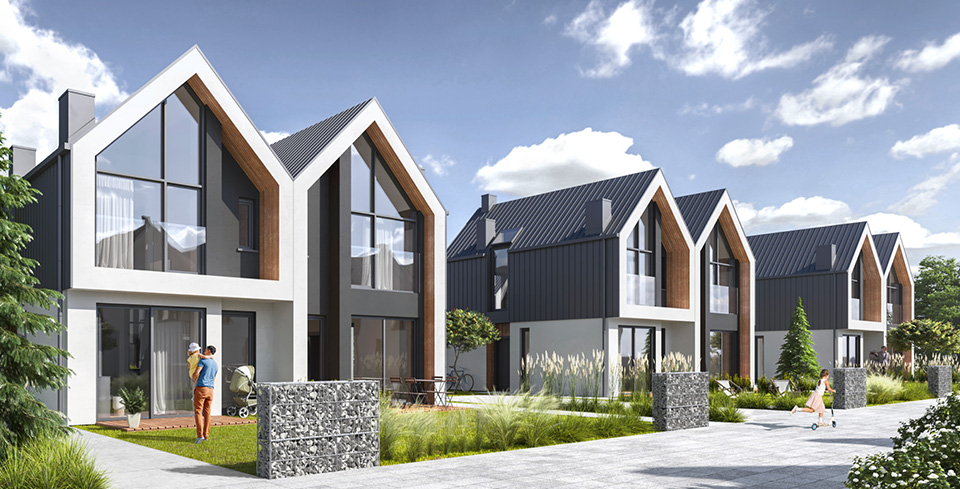 Stosujemy wysokoizolacyjne materiały, które pomagają obniżyć koszty eksploatacji. Instalacje budnkowe pozwalają sterować parametrami naszych domów zdalnie. Wiemy, że zmienia się klimat, dlatego na nawierzchnie stosujemy materiały przepuszczające wodę, zaprojektowaliśmy także system retencji wody w postaci niecek. Redukcji śladu węglowego służą panele fotowoltaiczne, a także fakt, że wszystkie miejsca parkingowe są przystosowane do możliwości ładowania pojazdów elektrycznych.
