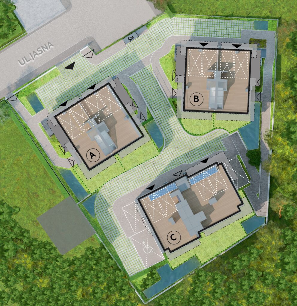 W budynkach A i B zlokalizowaliśmy 8 lokali o statusie lokalu mieszkalnego mieszkalnych (VAT 8%), natomiast lokale w budynku B mają status lokalu użytkowych (VAT 23%). Wszystkie lokale położone na parterze mają swoje indywidualne ogródki, a lokale położone na ostatniej kondygnacji piętrze dostęp do dachu.