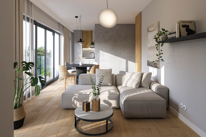 Nowoczesna bryła budynku łączy funkcjonalność i design. Apartamenty o powierzchni od 56 do 70 m2 mają bardzo przemyślany układ funkcjonalny. Wysokość pomieszczeń to aż 270 cm, a panoramiczne przeszklenia okien powodują , że widok z apartamentów jeszcze bardziej zapiera dech